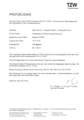 ST-2052無石棉墊片獲得飲用水認(rèn)證KTW,W270 我司ST-2052無石棉墊片于近日通過了歐洲D(zhuǎn)VGW機(jī)構(gòu)的認(rèn)可。獲得了歐洲飲用水方面認(rèn)證證書。 包括DVGW KTW,KTW W270。 ST-2052是一種通用型的無石棉環(huán)保密封墊片材料,可以應(yīng)用于多種工業(yè)環(huán)境。更多應(yīng)用可來電咨詢 KTW證書 W270證書 上一個(gè) 返回列表 下一個(gè)